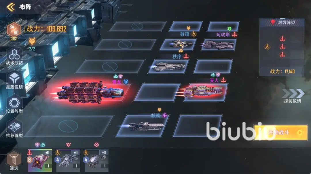 在前期时,小伙伴们如果不知道搭配什么样的队伍,那么推荐先优先搭配一款均衡通用的,这样无论是什么模式都比较通用,建议攻防一体,前排可以用战列舰,中排可以搭配两艘巡洋舰,后排用泰坦加补给船就可以了。