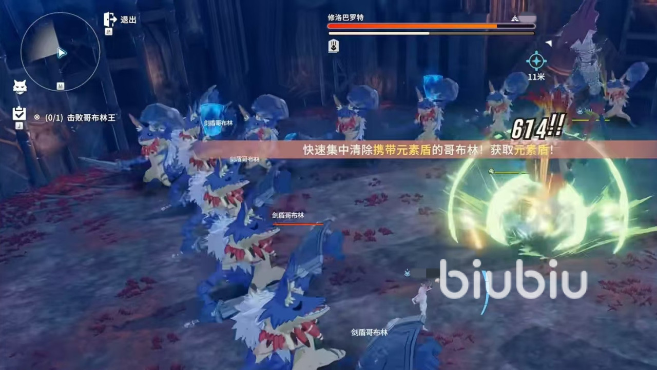 进入剑盾哥布林机制之后,全队立即向场边跑去,优先为团队中的坦克打死一个剑盾的哥布林,这样t就可以直接去捡盾,捡到盾之后所有人站在场地边等待此机制结束。奶妈要注意的是,要及时捡起另一个掉落在场上的盾。这两个目标捡盾是为了后面机制做准备。接下来有一个弹射能量球机制也非常重要,如果没有达成条件,boss会进行一次全屏输出,如果达成了条件,boos就会进入到虚弱状态。具体介绍是boss会随机锁定一个带盾目标,并朝着目标不断旋转,同时在正面生成一道防护屏障,这个时候两个带盾目标就需要和boss成三角状,这样一起配合起来将球弹到boss身上就达到要求了。要注意不要弹到boss身边的盾上,和旁边的墙上。