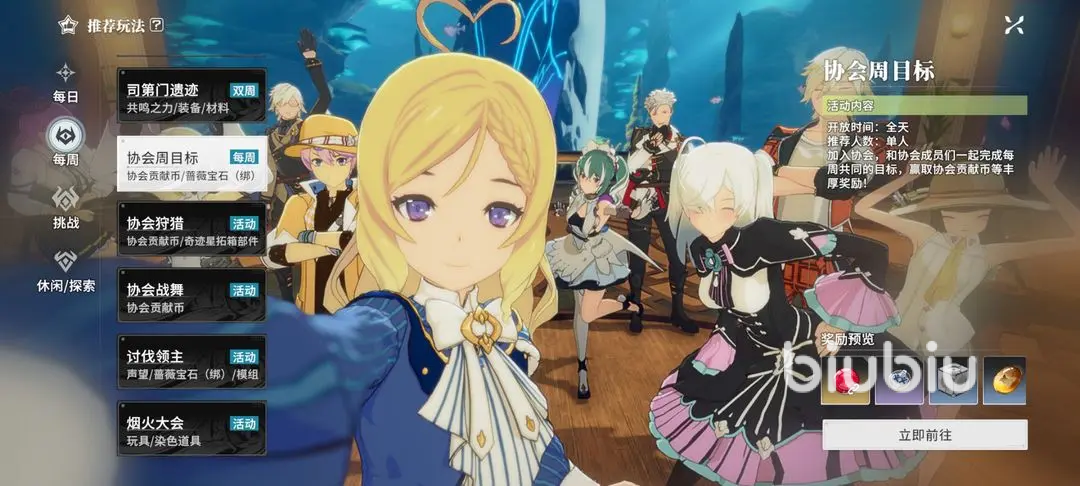 3、协会周目标。这是加入协会后的单人玩法,可和协会成员共同完成目标。4、协会狩猎。每周五晚上才开放,建议2-4人前往,活动开启之后,一起组队去猎场狩猎。4、协会战舞。也是周五晚上到周日开放,单人的模式,可以在协会活动中心来展示舞姿,能给参与狩猎的战友带阿狸增益。5、讨伐领主。单人组队都可以,能和最多20名玩法共同战斗,写手击败领主。6、烟火大会。休闲浪漫的玩法。