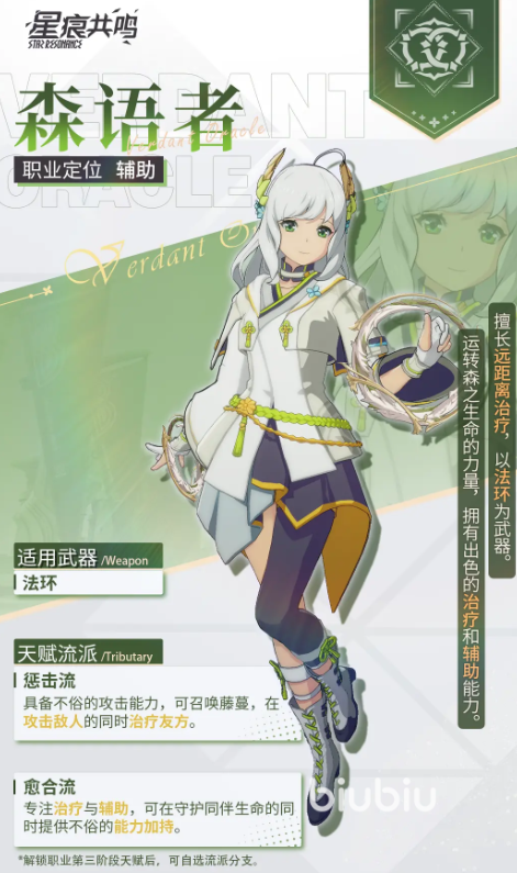 森语者可以治疗当辅助的同时,也能进行输出,选择他在开荒期会有不错体验,能节省很多血药,普攻会打出四段并形成魔伤,特殊攻击会召唤出巨大的藤蔓攻击目标区域,造成输出的同时还会治疗自己和周围生命最低的友军,“不羁之种”会召唤出种子攻击敌方,形成魔伤的同时并降低他们25%的移动速度,“滋养”会让自己和周围队友获得10秒的森之力,森之力每秒都会进行治疗,终结技会用森之力创造出一个结界,结界展开会先对敌方形成持续魔伤,自身和队友则会得到持续治疗和一定伤害减免。