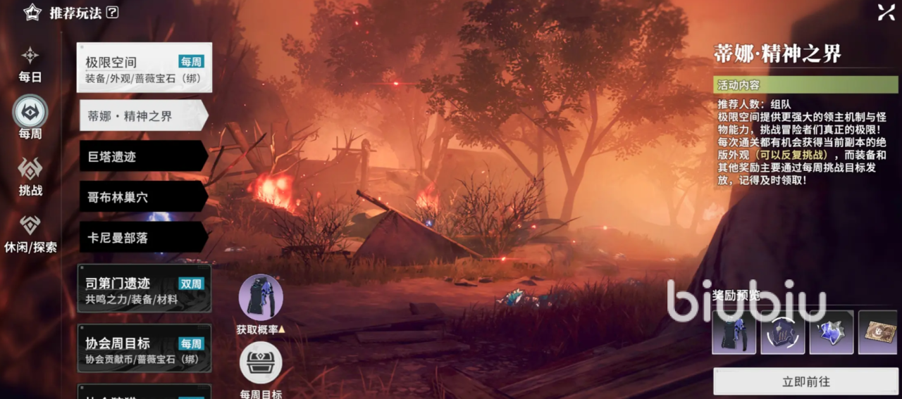 除了主线外,每天完成各个玩法也很重要,首先是每日讨伐首领,进入会在野外出现各种首领怪物,通过每日发放的钥匙,能打开击败首领后的宝箱,拿到丰厚奖励并且击败怪物还会有额外掉落,推荐组队参与,不稳定空间需要前往调查处,探索机械的秘密,这个玩法不管是组队和单独冒险都可以,并且还是装备的主要获取突进,记得每天参与;