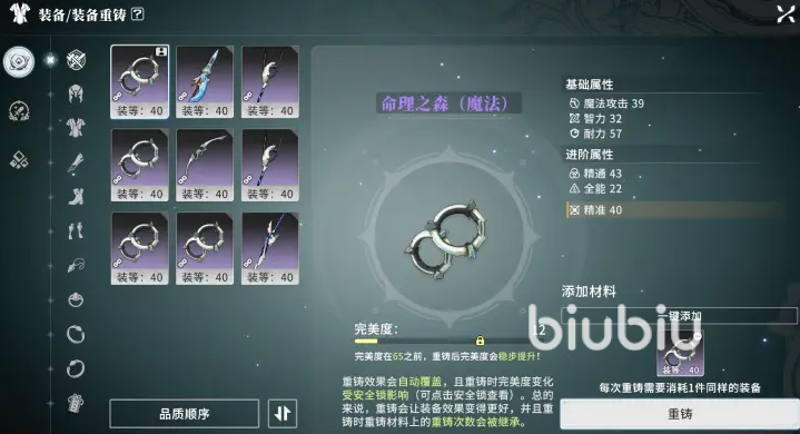 装备对于我们的能力影响很大,越好的我们的实战效果就会越佳,目前游戏装备品质为绿色、蓝色和紫色,大家可以在装备界面,对获取来的装备进行重铸、精炼和分解等操作,重铸需要消耗一件同样的装备,让其基础属性数值刷新一次,界面上面的完美度是评价一件装备的直观数值,最高为100,随着重铸次数的提升,装备的完美度会不断接近100,此时给我们带来的提升就会越好;