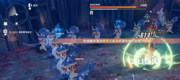需要注意,这里的森哥布林是能给全体小怪回血的,还能给自己加护盾,需要优先击杀,火哥林布的伤害比较高,一不小心就会团灭,BOSS的机制相对会简单些。对局开始后,可以先卡一下虚蚀加成,之后就正常进行输出,BOSS的血量掉到五分之一时,这时会进入剑盾哥布林机制。