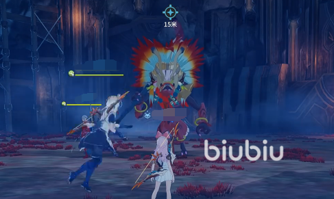 在召唤之后队伍中的两位输出需要去打这个残影吃残影的加成效果,然后t需要开怪去拉面向,奶需要站在t的对面最外围的位置,站好以后就可以开打了,开打后血量打到一定阶段后,boss会召唤哥布林,这些哥布林中有一个带有元素反应。