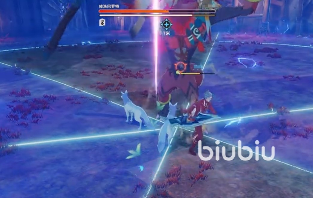 在遇到剑盾哥布林的时候,它的血量在下降5分之1的时候就会触发,此时玩家得捡盾配合弹射能量球来破防,其中两名带盾玩家需与BOSS呈三角站位,把能量球弹至BOSS位置,如果失败的时候,是很可能会触发全屏秒杀的,此外当场地中出现分割线或交叉飓风时,玩家还需按提示去进行走位。