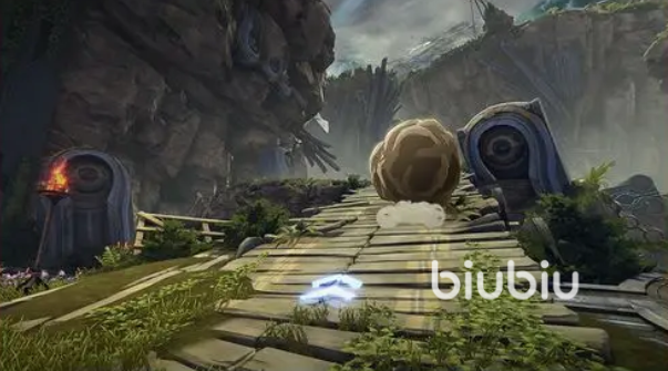 滚石会在桥梁等狭窄处出现,若被撞到会导致生命值大幅下降,建议观察好滚动轨迹来躲避撞击,狂风会降低冒险者们的移动速度,在有狂风出现的时候尽量避免陷入战斗中,另外在一路上还会有如下图一样的神秘装置,这个装置在看到后一定要激活,激活后会给予玩家增益,让接下来的战斗更加轻松。