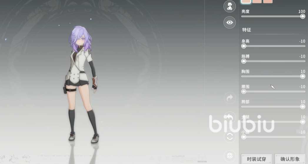 最后就是皮肤以及肢体,皮肤的饱和度选择100,这样看起来就很光亮,就很活泼的感觉,接着肢体的所有选项都选择-10,这样看起来所有的身体都不会显得很壮,更符合少女的体型,而且小巧玲珑的搭配其他衣服也更为漂亮,关于服装的选择可以根据玩家自身的喜好进行选择,这边是推荐魔女套装,这样搭配起来才有一种天才美少女法师的感觉。