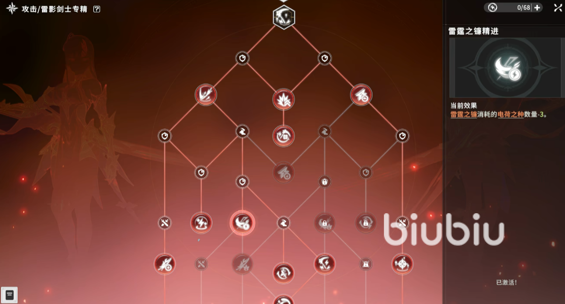 霹雳连斩则是召唤流的资源手段之一,消耗刀意释放多段攻击,削韧出色,同时积累电荷之种。点出天赋后还能触发“霹雳升龙斩”与“霹雳电荷”,不仅增加伤害,还能稳定供给强化普攻所需的资源。虽然在纯召唤打法中不是绝对核心,但能在空窗期起到节奏补位的作用。