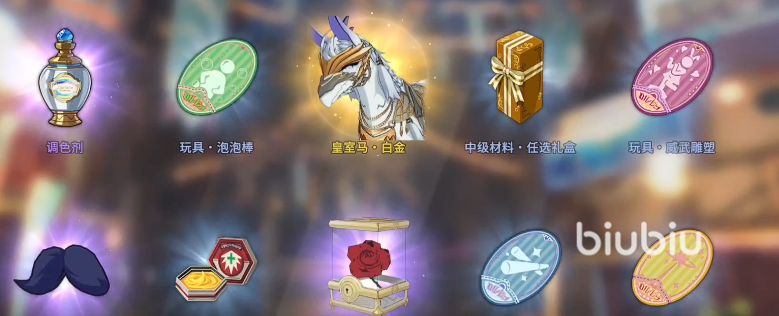 然后去等一期自己喜欢的扭蛋池,这扭蛋池就和卡池一样会更新,时不时就会有类似于限定卡池角色的那种服装和坐骑进入到池子中,所以大家可以通过攒的方法去蹲一期限定的服装坐骑去抽。