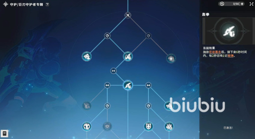 基础循环围绕“砂石斗篷”、“格挡冲击”、“岩怒之击”与“勇者壁垒”展开。砂石斗篷是构筑的节奏核心,短CD与高回转资源能力,可以看做是每轮35怒气和6砂金石的供给源,务必保持常驻。格挡冲击可瞬间提高格挡概率,并在格挡成功时提供砂金石资源,建议穿插使用维持Buff效果。岩怒之击是主要输出技能,也是砂金石的主要消耗口子,有天赋支持下能化为AOE陨石攻击,爆发很足。勇者壁垒作为减伤技能,在强化天赋支持下拥有不俗的倍率,并能协同格挡冲击形成完整的防御链。