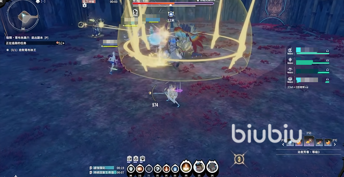 那Boss该怎么打呢?在剑盾护盾的阶段,小伙伴们需要迅速反应,分散到战斗场的边缘地区,之后先杀两个剑盾哥布林之后,让坦克和奶妈各捡一个盾,用于应对弹射能量球机制。之后boss在锁定带盾目标之后会生成屏障,然后让两名有盾的玩家和boss的站位形成三角形即可,最后通过引导能量球反弹到boss的身上触发虚弱。