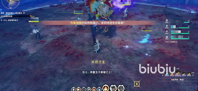 在战斗的时候,整个地图会出现很多个分割区域,小伙伴们需要跟着boss的位置以及移动方向及时的调整个人站位,不要贪输出。等boss的血量低于50%的时候会触发交叉飓风,地面会出现红色标志,小伙伴们需要用交叉站位的方式,两人横向两人纵向去分散躲避。