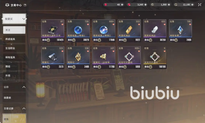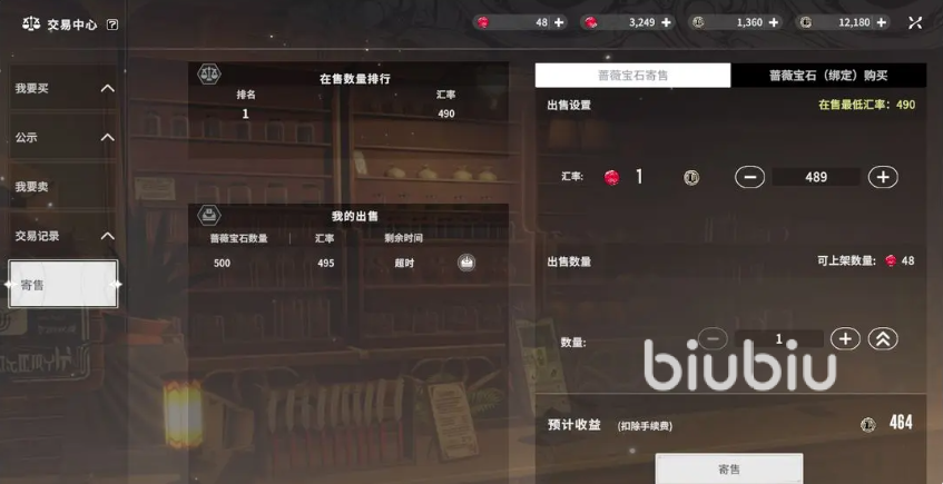 第二个重要能力就是卖,毕竟在游戏推进过程中,有些装备道具用不上了,但是丢了也可惜,这时就可以在交易行出售,换成货币,避免了浪费;直接在交易行发起寄售,符合要求的物品就能上架,上架需要设定好交易金额,选择合适的售价,如果有其他玩家看中,就可以直接买下。