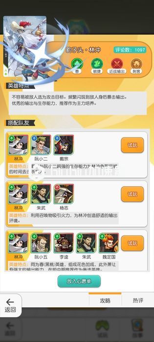 小浣熊百将传林冲技能 林冲英雄技能介绍