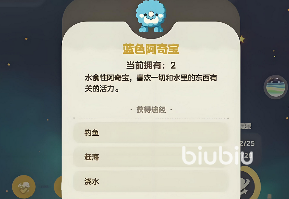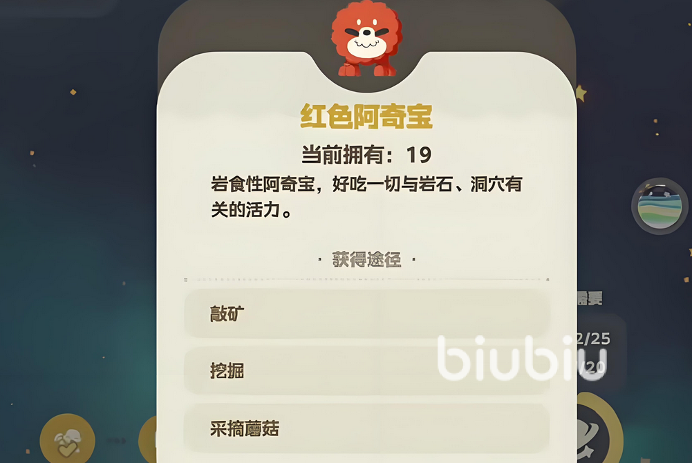 第1种白色阿奇宝,它是属于一种杂食性的精灵,喜欢多种多样的食物来源,一切生活行为都有机会获得。第2种红色阿奇宝,它是岩食性的精灵,喜欢吃一切和岩石洞穴有关的活力,获得途径包括敲矿、挖掘和采摘蘑菇。第3种蓝色阿奇宝,它是水属性的精灵,喜欢和水里的东西有关的活力,获得途径主要包括钓鱼、赶海和浇水等。
