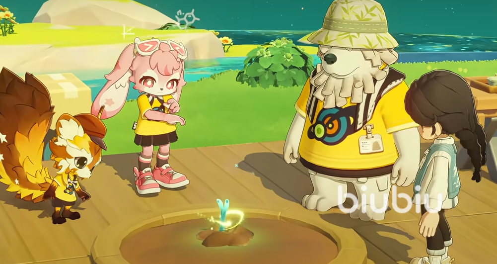 我们首先需要去收集三朵鲜花和三株杂草,这个在营地的附近便可以找到。在完成我们去找莫白,他会给我们一个露卡瓶,这个时候露卡也快装满了,咱们可以对之前种下的种子来进行浇灌了。浇灌之后树苗会得到成长。