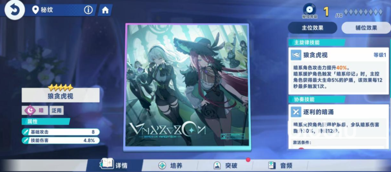 这个指的是我们在携带秘纹的时候,会分为左边的主位,以及右边的辅位,当我们把秘纹放置在主位上面,那么它的主旋律技能就会生效,放置在辅位时,只有秘纹所提供的强攻、体力等音符,至于协奏技需要大家获得对应的音符,达到激活条件后激活效果。