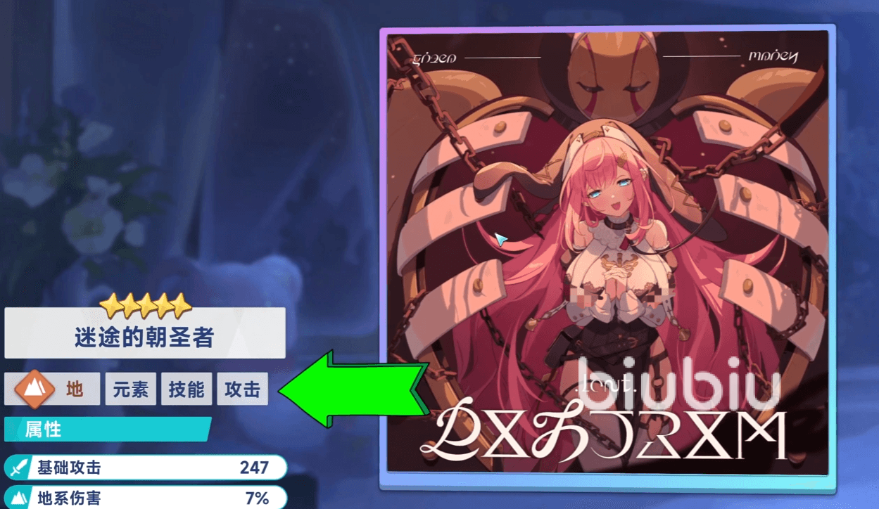 首先第一步我们需要知道秘纹的具体功能,点击进入手上具体的秘纹界面后,能在左下角的地方看到它们的特点标签,比方说下图的这个就是地属性元素技能攻击,说明增加的是地属性角色的小技能伤害。