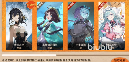 抽奖中拥有大量的奖励,这是奖池性质的活动在完成后池子会更新,需要通过累计抽奖拿到所有累计奖励才能结束,之后是一个商城皮肤优惠活动,这活动中玩家可以领取到优惠卷通过优惠卷可以以低价格购买皮肤。