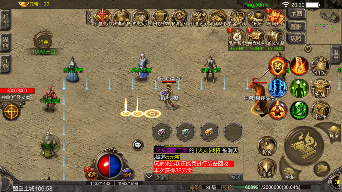 在攻打龙神的时候道士玩家是需要让自己的儿子们上去打头阵的,道士职业在游戏里其实就是召唤师职业,在前期的时候道士只能召唤出一只儿子,但是随着道士的升级,技能熟练度的提升,能够召唤的儿子数量就会多很多了,巅峰的道士能召唤出八个儿子,并且随着道士的技能提升,儿子们的血量和战斗力也会提升很多。