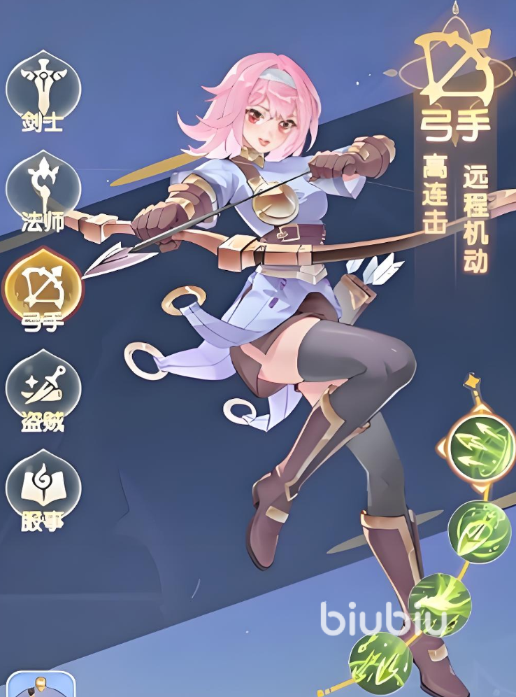 第一个职业手套弓箭手,弓箭手这个职业的优势在于他的射程很远,能在安全距离对敌人进行攻击,很多行动迟缓的 boss 都可以通过远程消耗慢慢杀死。而且这个职业本身也具备了一些范围 AOE 能力,比如箭雨技能,还可以布置减速或伤害陷阱,这样就可以提升杀死怪物的效率,让玩家能比其他职业更快地积累资源来到中期。