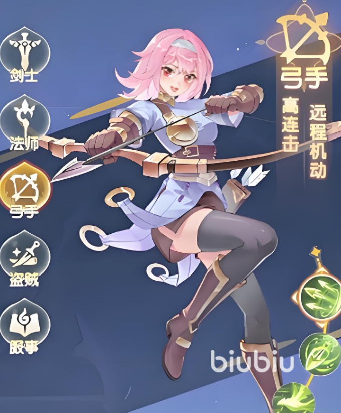 弓箭手有着超远的射程,可以在安全范围内对敌人展开攻击,并且带有范围招式,比方说箭雨等,同时他还可以布置减速或者伤害陷阱,进一步提高自己的杀怪速度,不过弓箭手比较脆皮,被近身的话会很容易死亡,需要保持自己的走位。