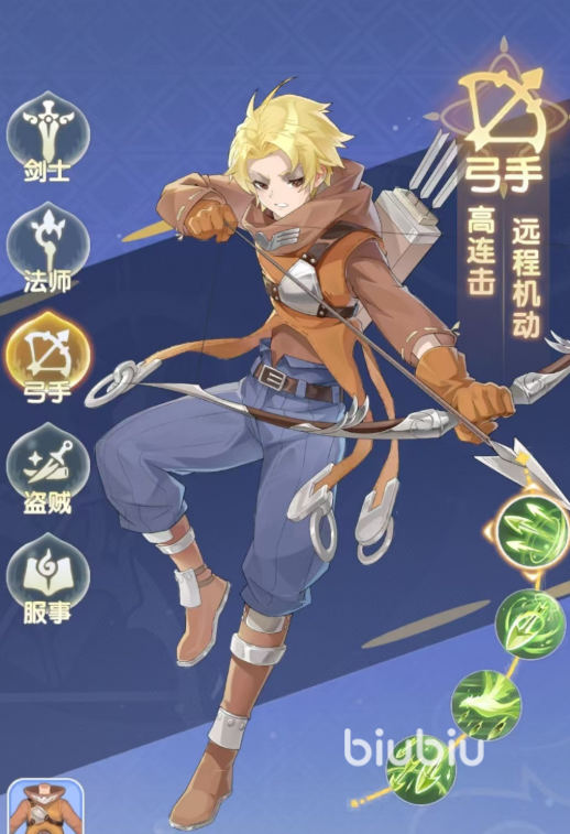 弓箭手主打远程攻击,有着高速的连击,在较远的安全范围内就可以靠着射击和招式来对敌人实现打击,并且自身机动性强,可以布置减速等陷阱,来保证自身的安全,适合追求灵活机动,且对走位有自信的玩家。