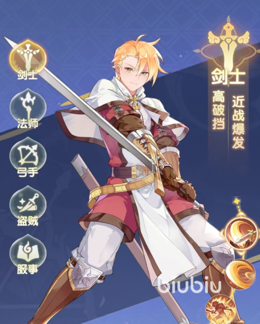 剑士主打近战,有着很高的格挡能力以及近战爆发,凭借着不错的身板能直接贴近敌人,一边抵御攻击一边来造成一定输出,综合能力强大的他不管什么场景都可以应对,上手简单适合新手。
