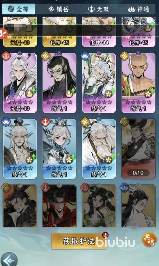 如果大家想要获取角色的话,那就要进入神游阁才行了。这里就是一个抽卡的地方,几乎大部分的角色都可以在这里抽到。要是想参加的话,就可以点击主页里的神游阁,并使用相关的招募券。当然也可以在护法页面中,直接点击获取护法,也会跳转到神游阁里面,帮助大家抽卡。