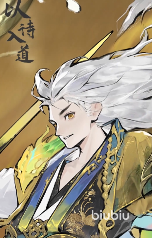 其实传说中的李白一开始并非剑客,而是以诗入道,并成为人人敬仰的诗神。不过他的外表也不是那种老掉牙的老头形象,而是潇洒又帅气的白发小哥。白发也能从侧面印证出他的年龄很悠久了,拥有倍加深厚的实力。另外他的服饰也相当特殊,有着金色绣线,更有黄龙加身,尊贵又华丽!