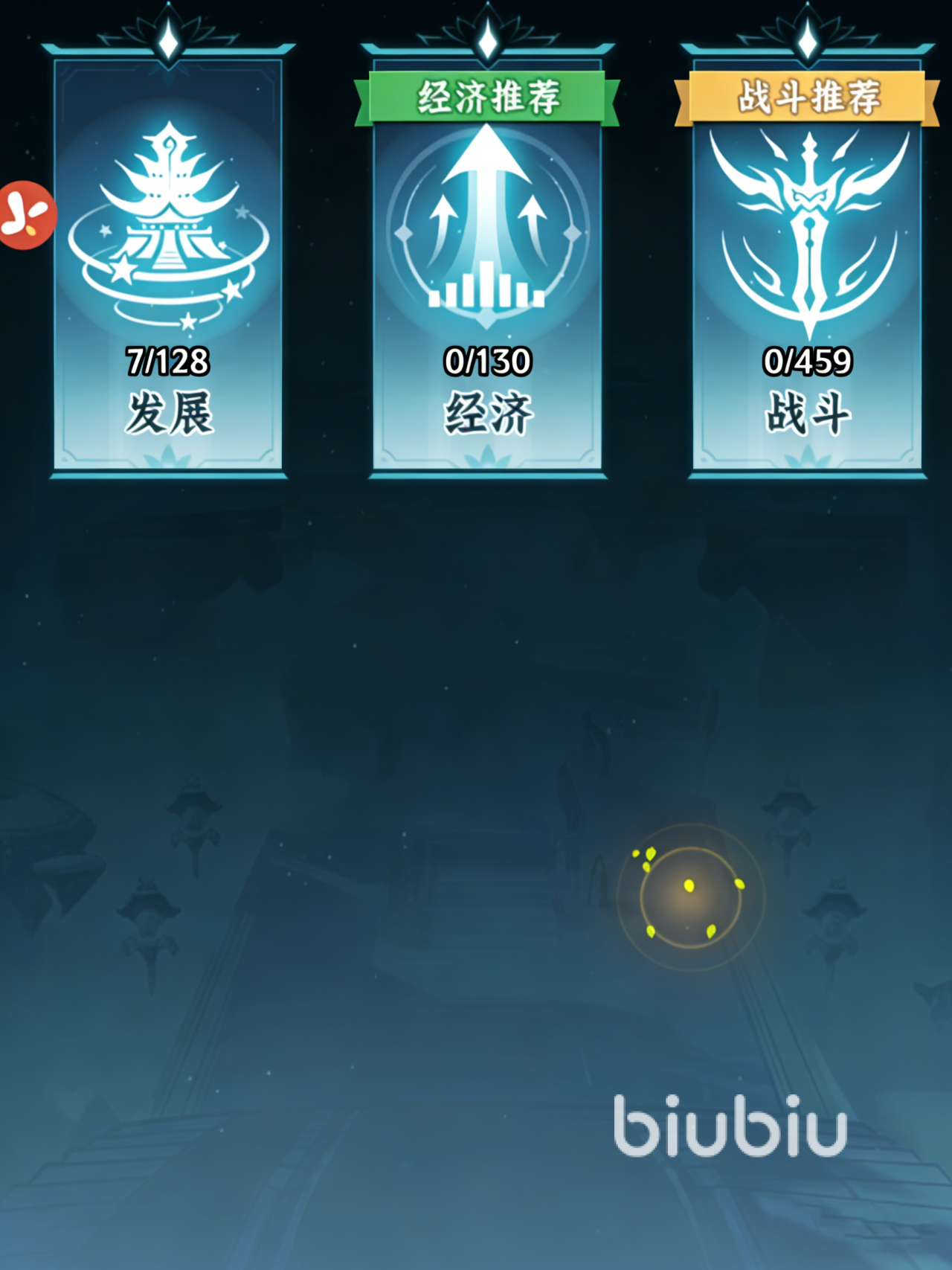 这时就能在参玄阁中选择不一样的分支了,点一下就可以跳出三个选项,分别是升级、任命以及参悟。不过进去之后,看到的东西也是一样的。分别是发展、经济以及战斗,前期的话,就更推荐大家选择发展为主要升级方向,可以让自己更快提升资源的获取速度!