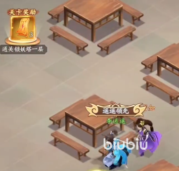 玩家们在对话结束之后便可以自由行动了。游戏本身的玩法和游戏原版差不多,也是以回合制的形式为主。玩家们首先需要先帮婶婶招呼来住店的客人,之后在门口左边看到一位道士,熟悉剧情的玩家便会知道这位就是我们今后的师傅。他目前因为酒瘾犯了所以急切的需要喝酒,玩家们送给客人的酒也因为客人自带酒的关系,所以没有接收客栈准备的酒水。玩家们这个时候便可以将这些酒水给那位醉道士喝。
