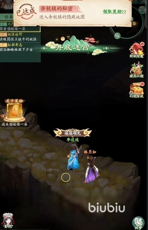 这是一个井底的迷宫,怪物的实力方面,相对而言还是比较弱的,大多是一些蜈蚣,蜜蜂,坛子怪之类的基础杂兵。基本上在各位去杭州逛了一圈之后,战斗力水平差不多就可以进行该迷宫的攻略了,一路平推过去即可。不过,奖励方面还算是非常不错,除了任务本身可以给予我们仙游点数和通灵符的奖励以外,迷宫当中还能刷到通灵符碎片。