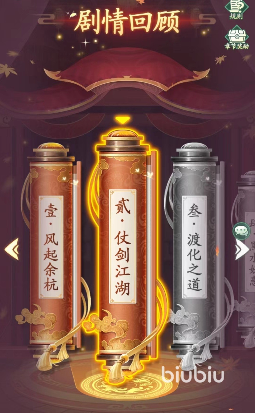 另外剧情回顾主要是有剧情的文字资料,而前尘忆梦则是对应的图片,这让两者结合起来就是整个的完整剧情。剧情回顾从风起余杭一直到仗剑江湖以及后面的所有章节都有相应的名字,点击进去之后,就会出现所有对话以及诗句。这两者都无需大家自己去进行操作,只要按部就班的完成主线任务,就会自动完成收录。是玩家找回回忆的好地方,等到闲暇时候就来到这里欣赏一下曾经剧情。肯定会有不一样的感受。