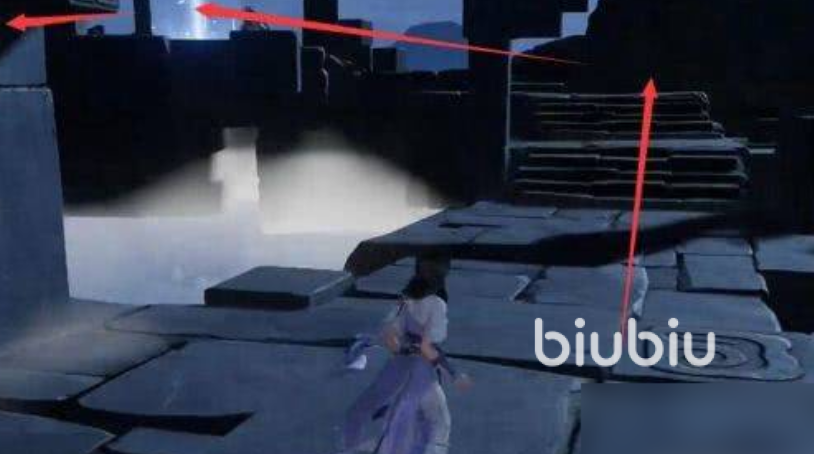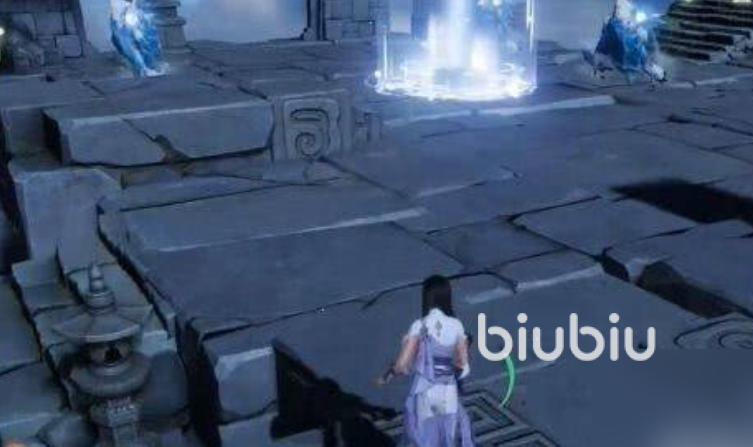 第五个剑魂需要玩家们传送到原本的传送点,然后跳到传送点的平台,这时候就会露出第五个剑魂玩家们可以启动,最后一个剑需要玩家们往前走去,在走的过程中可以看到石头类型的解密,当石头解密完成就可以解锁最终的法阵了!