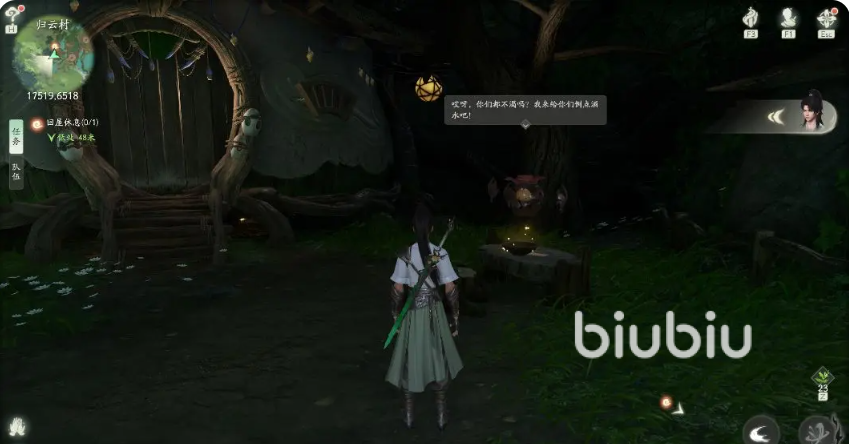 这种时候,只要大家点击“化灵”就能让角色变成一只鸡,而后续的游戏推进,也是以这只鸡的视角来展开的,当幻化成鸡之后,也是有一些好处的,例如定宝坞的直线任务,大家需要从村庄中打探一些线索。