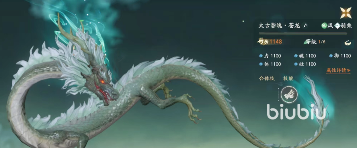 另外它的属性颇为强大,有着高达1000多点的修为。其他五维属性均为1100点,算是一个多边形的御灵了。然后他还有专属的合体技能,让你获得更高的爆发伤害。想要获得更强的实力的话就可以选择升级,只不过要耗费一定的材料。