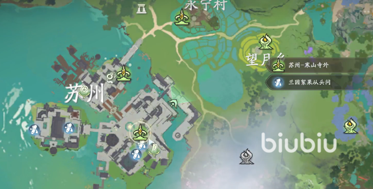 在游戏中玩家解锁第三章主线剧情后就可以解锁苏州城,但是想要前往壁画所在地玩家还需要接取壁画丢失的任务,在苏州城的左上角玩家就可以找到传送锚点,在这里玩家就能找到第一幅壁画。