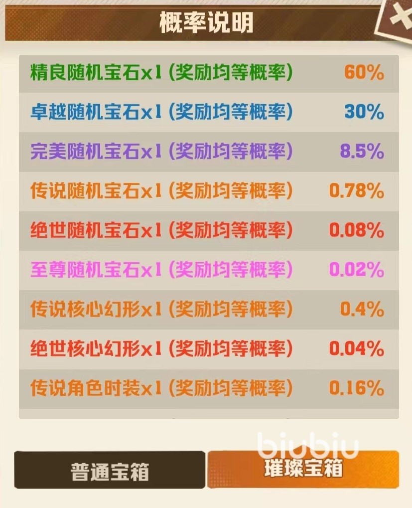 大家在游戏主页面中点击角色,在此功能中就可以看到有时装选项,目前游戏公布的时装种类还是比较多的,也有着不同分类,主要分为金色品质传说和红色品质绝世。无论是哪一种品质,获取的方法都是一样的,那就是在商城中进行宝箱开启。商城中的宝箱有两类,分别是普通宝箱和璀璨宝箱,普通宝箱只能获得宝石,在璀璨宝箱中每次开启都有几率获得皮肤。