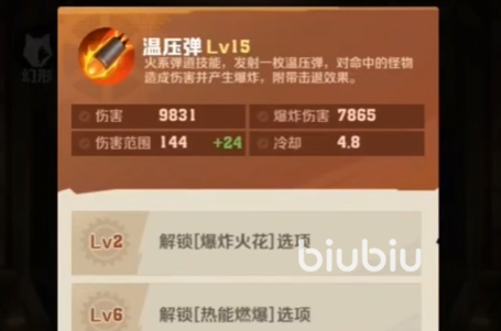 温压弹作为火系门派的一个代表技能,也是日常操作的核心技能,大家在日常的每场战斗中都会用,所以技能加点需要直接拉满,对于宝石上面的也是需要直接拉满的,这样才能确保他能够为我们提供额外的燃烧区。