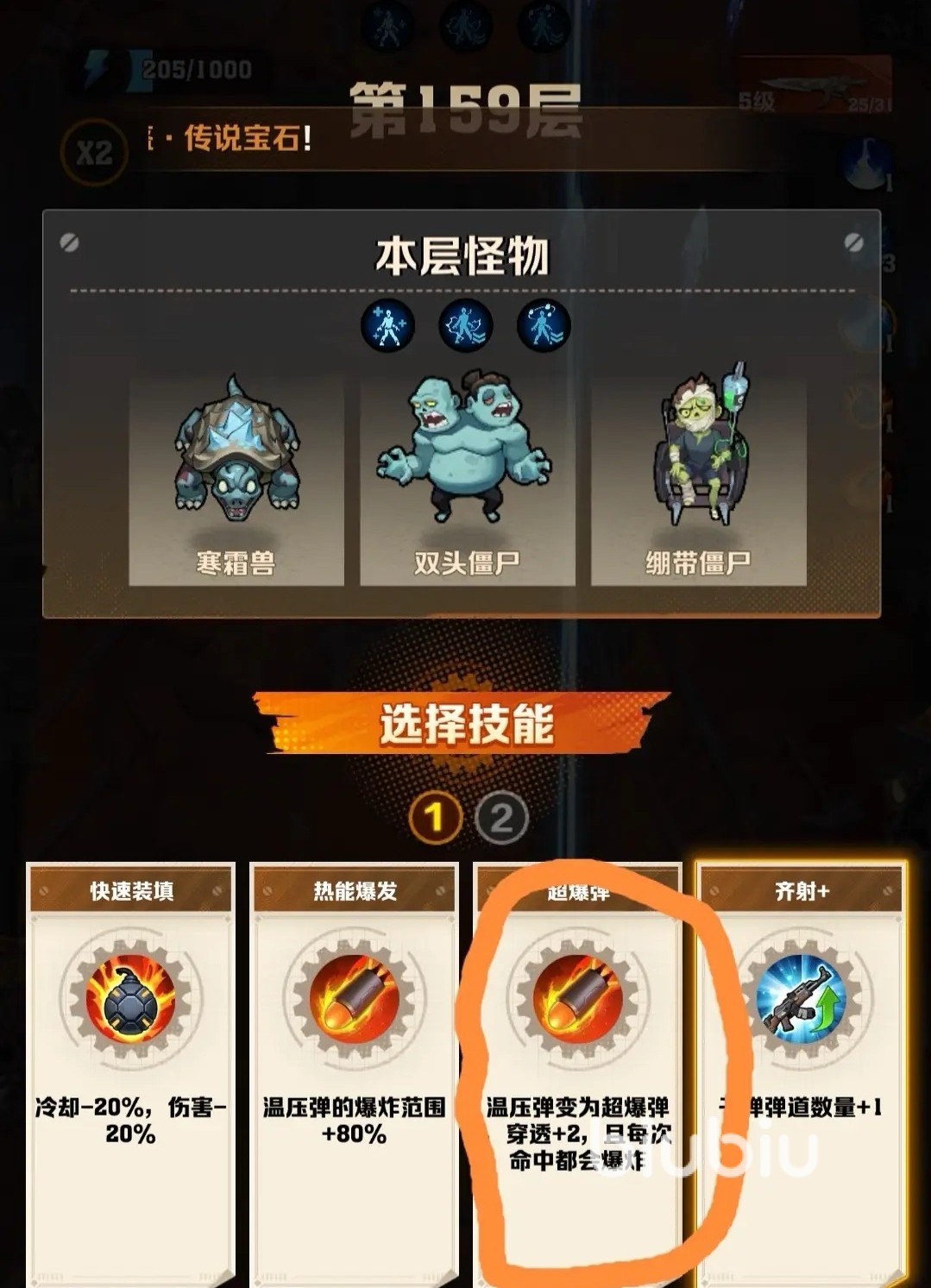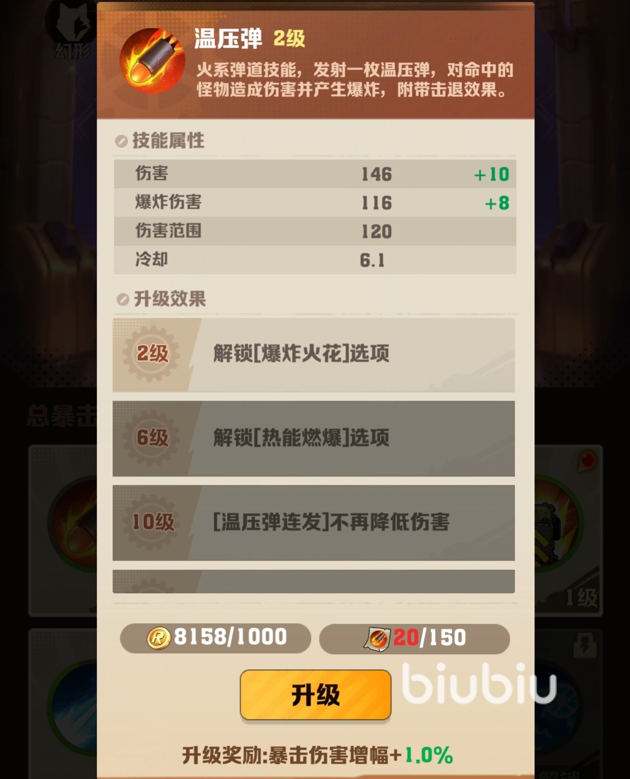 温压弹连发虽然可以额外释放,但是它和终极技能超爆弹会互斥,所以在升级的时候要注意确定要走哪个路线。其实温压弹和干冰弹是大多数平民玩家喜欢的组合,干冰弹延缓敌人移动将大量敌人聚集在一起,而温压弹可以集中清理。最后在宝石上可以优先选择提升暴击率和基础伤害的,主要目的就是为了大幅度的提升前期推图能力,更好的过渡到后期选择电磁流打法。