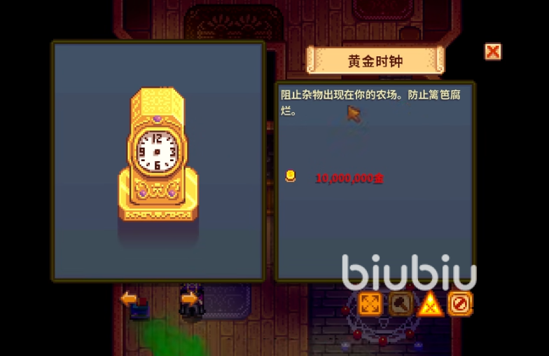以上就是小编为大家带来的星露谷物语黄金钟在哪买攻略,这个道具基本是在接近通关的时候才能拿到,毕竟1000W金币就已经不是小数目的了。