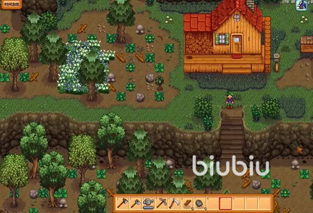 第一方面就是关于最重要的农场,大家进入游戏当中的第一件事情就是处理地上的杂草和石头了,杂草的话可以利用镰刀这种工具清理,石头的话需要借助镐子这种工具砸破清理。耕地的话,如果大家使用锄头锄土地的话,那么泥巴就会改变成深色,变成深色之后,这既是土地可以耕种的状态了,如果大家不是种植作物,而是种植数目的话,那么就不需要前面的翻土的步骤了,种树直接利用手将树苗握住然后插入土地里面就完成了。