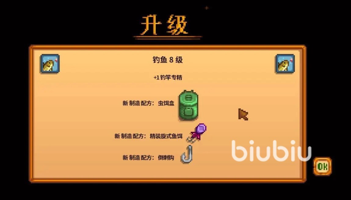 然后是升级工具,将普通鱼竿升到玻璃纤维鱼竿,这个需要3级钓鱼解锁,花费1800金。更高级别的鱼竿不是太必要,但如果你想买也不是问题。然后是洒水壶也需要升级,目的是提高灌溉的效率。至于其他的项目,则暂时放一边。