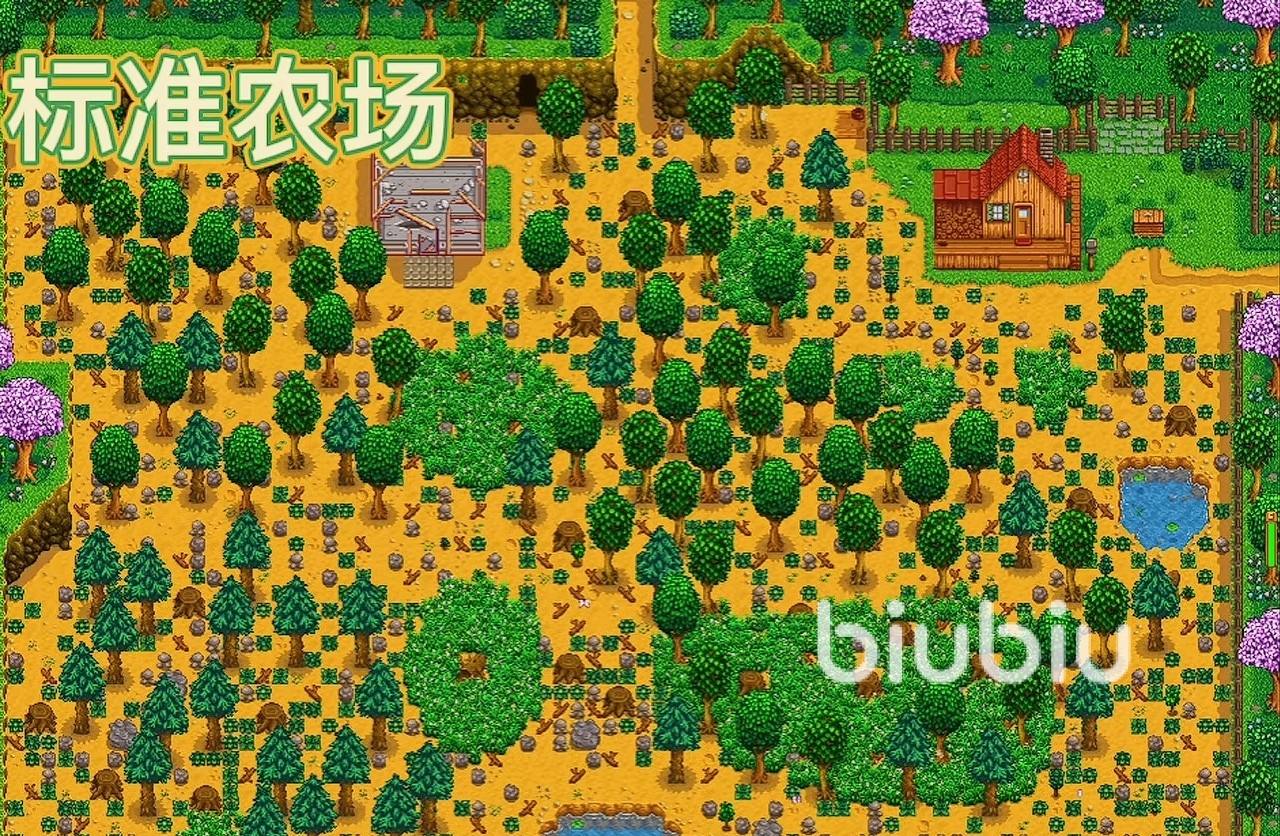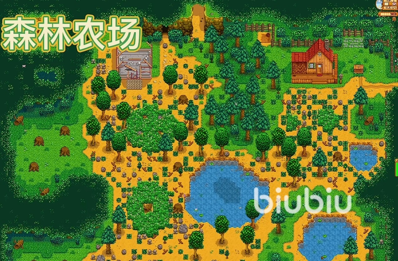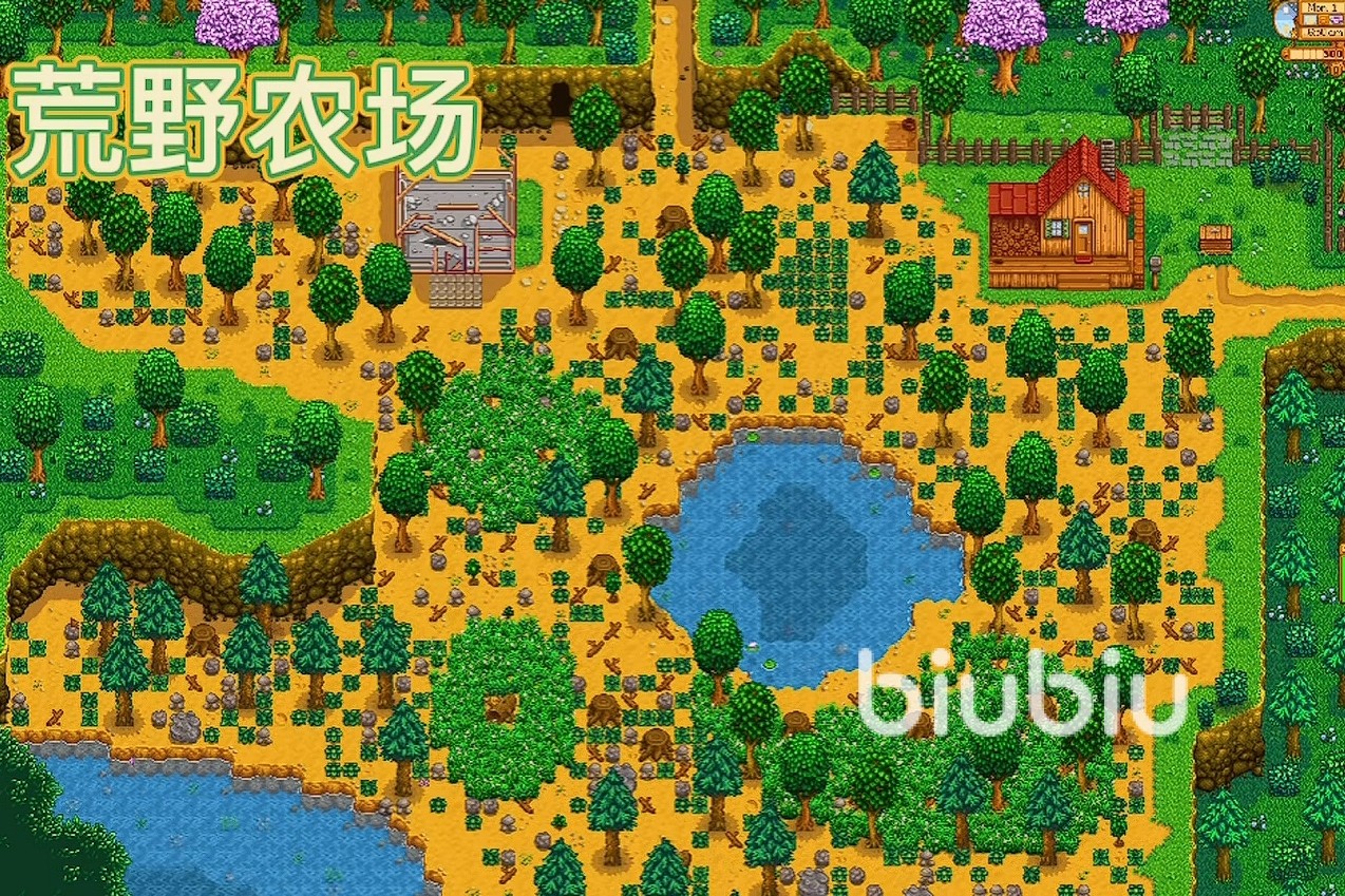 很多新手玩家们最喜欢的农场之一,区域开阔,可耕地面积大,还有着两片水池帮助我们进行浇水,同时,在前期阶段,还能为我们提供大量的木材和基础的石头等资源矿物,且分布合理是最推荐各位新手玩家朋友们选择的牧场之一。布局方面,前期的话,优先在家门口种植农作物,并且在依靠着我们下方的大水池进行畜牧业或者农业的规划,等到我们的牧场开起来之后,然后在左上角进行后续畜牧业的规划。