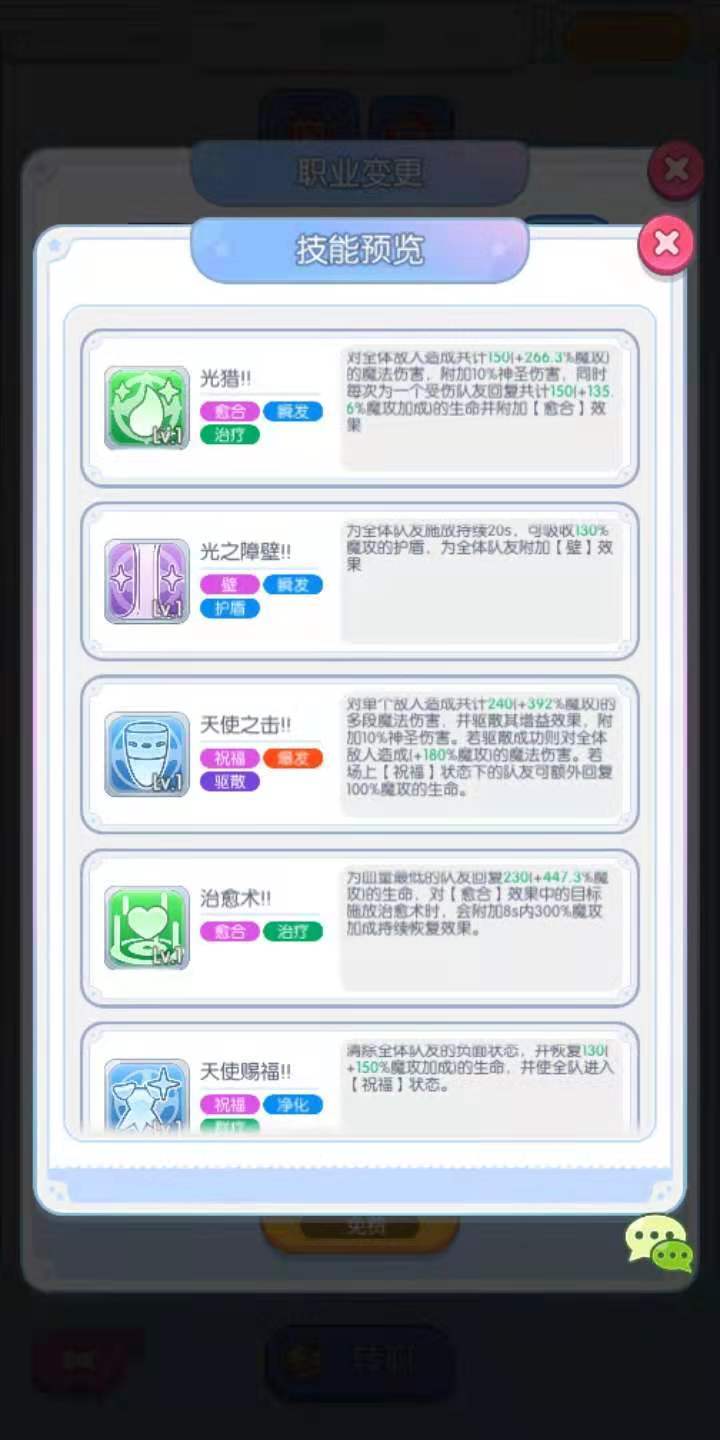 游戏内服事一共有六个技能,分别是光猎,光之障壁,天使之击,治愈术,天使赐福及光耀之堂,下面小编就来分别给大家介绍一下这六个技能。