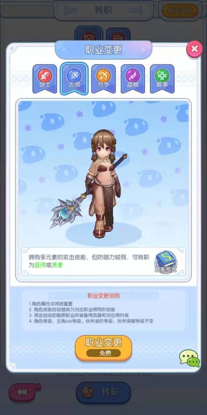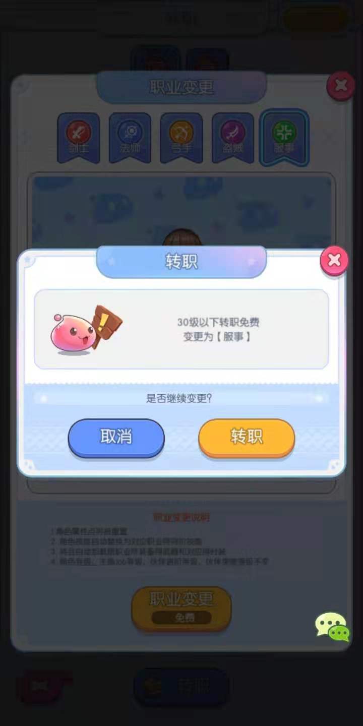 最后一个职业服事,就是游戏里的辅助角色,他类似于奶妈,拥有一定的辅助效果以及防御力,可以帮助队友提高伤害以及回血,在队伍内是一个必不可少的存在,但是该角色非常考验队友之间的配合,如果玩家前期没有合适的队友可以搭配就尽量不要选择,毕竟服事这个角色单刷地图可是非常费劲的,玩家完全可以在前期选择法师或者剑士这一类的角色快速提升等级,然后等到后期再进行职业变更,游戏里的首次职业变更是免费的,后续每次职业变更都需要消耗一定的职业变更书。