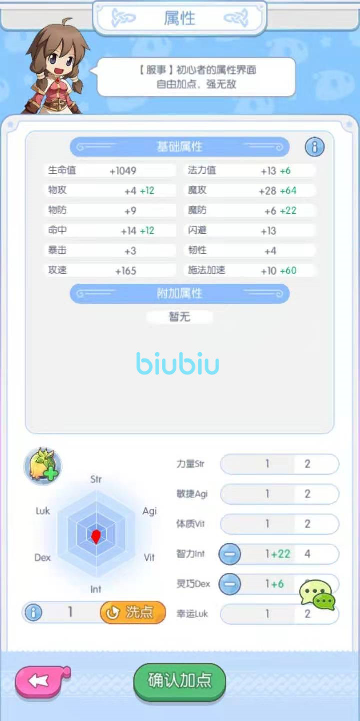 其中给敏捷进行加点是可以增加闪避值的,给体质进行加点是可以提升生命值以及物理防御能力的。给智力进行加点是可以提高魔法攻击伤害以及魔法防御能力的,给灵巧进行加点是可增加物理攻击,暴击率以及施法加速效果的,至于幸运加点则是可以增加韧性的,玩家需要根据自己未来的发展路线去选择不同的加点形式。