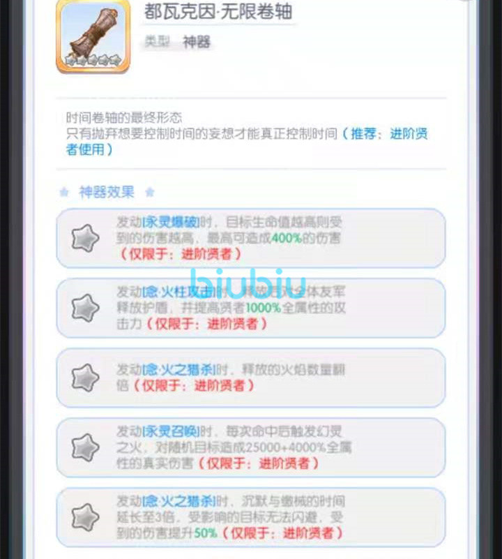 适合贤者使用的神器为魔法之匙以及无限卷轴,这两个神器都带有一定的控制效果,可为友方全体成员提升一定的法术伤害。