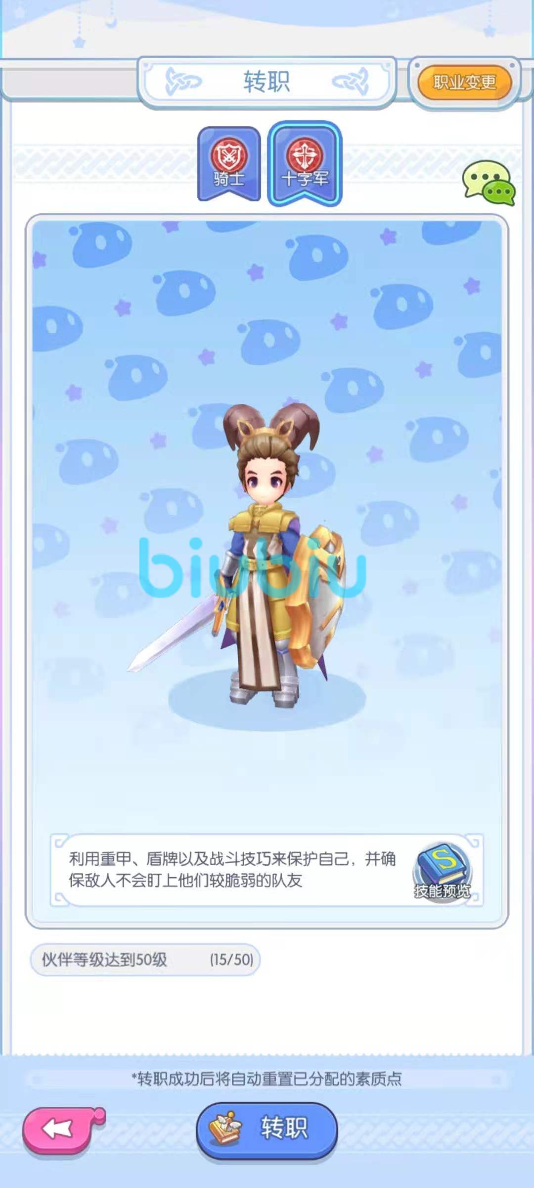 在到了转职的时候,战士可以转职为骑士和十字军两种职业,其中骑士是继承了输出方面的属性,技能都是强力的输出技能。而十字军则是继承了防御方面的特点,都是一些防御和保护的技能。
